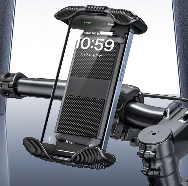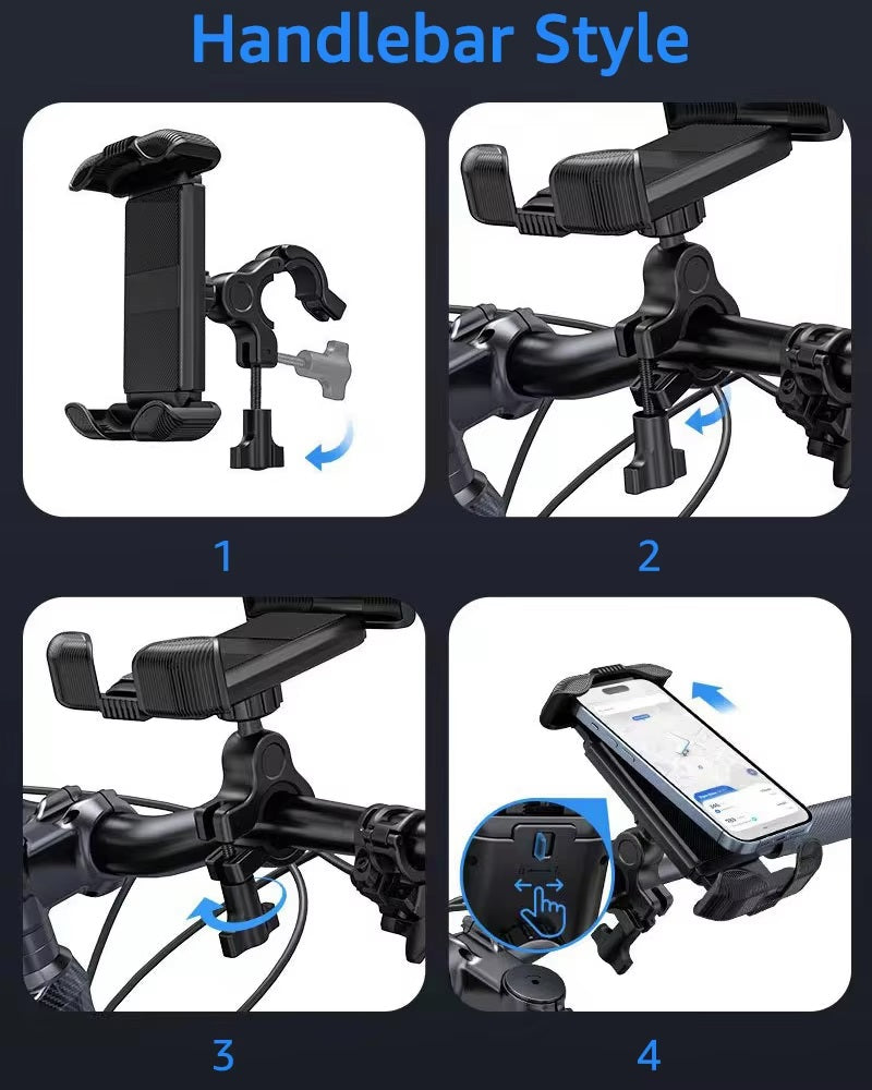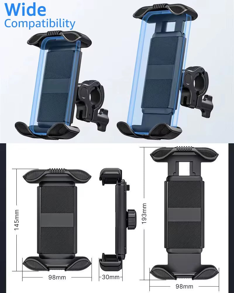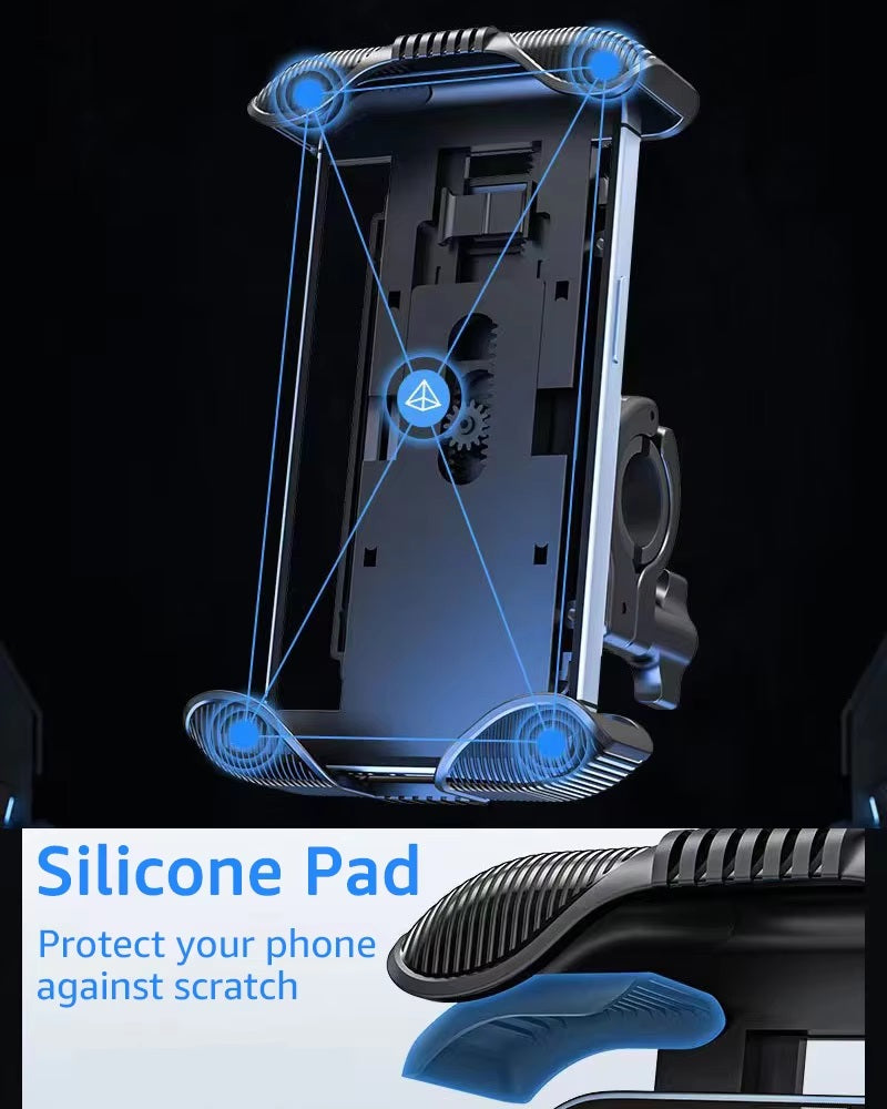 ☁Secure Grip, Enhanced Safety: The reinforced base of our bike phone attachment ensures a sere grip, double-locking onto handlebars without shaking or slipping.