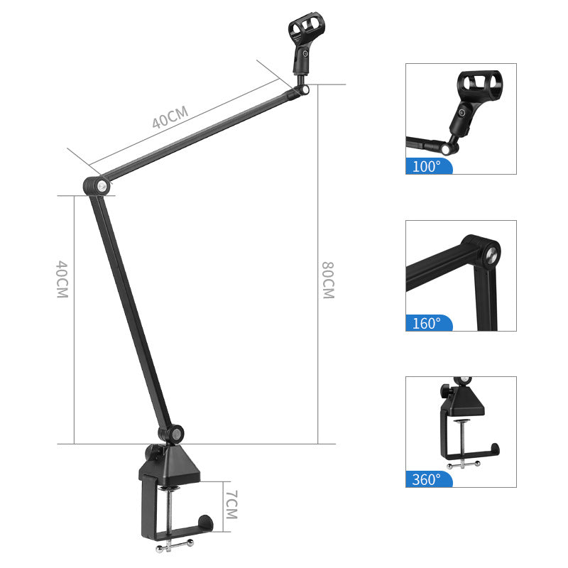 Adjustable Mic Boom Arm The microphone arm stand can be rotated at multiple angles. You can easily adjust the microphone to the right angle or height to showcase your perfect voice. It is perfect for podcast, broadcast, studio and home use.