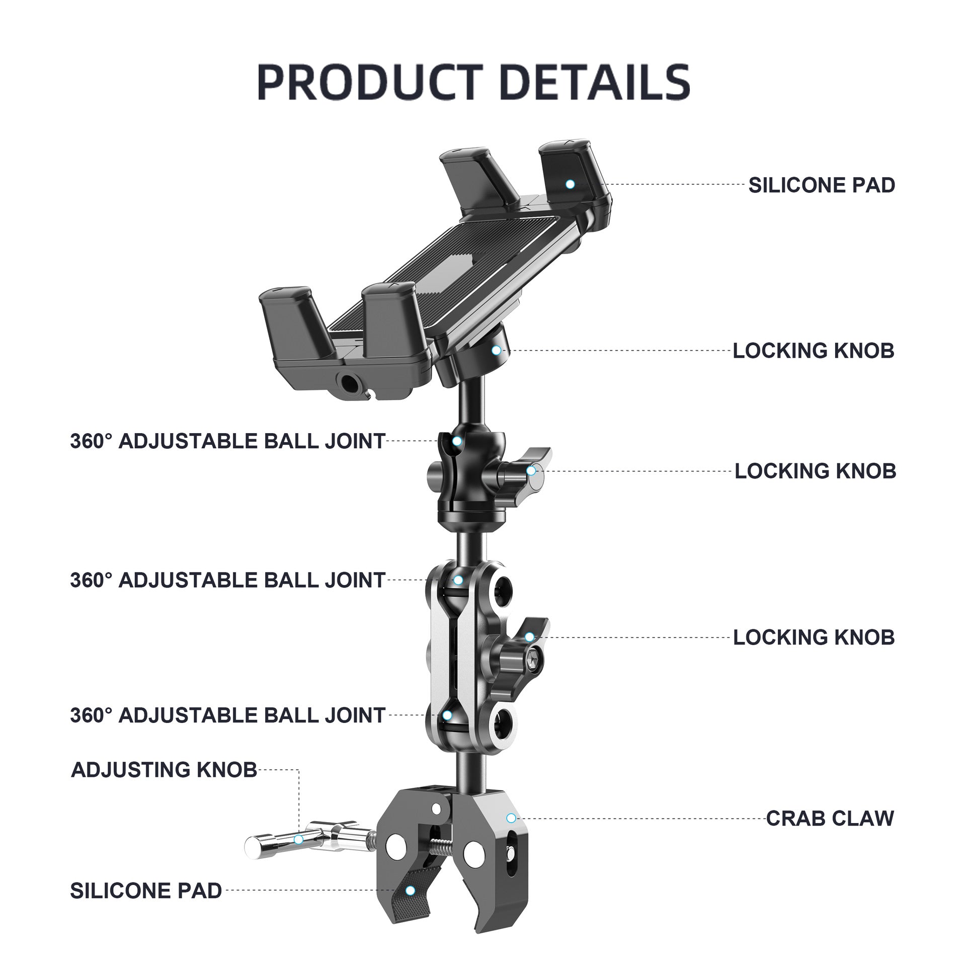 3.Fits All Devices (4.7-13 inches): From small phones to large tablets like iPad Pro, Samsung Tab, the heavy duty tablet holder ensures a firm and scratch-free grip.