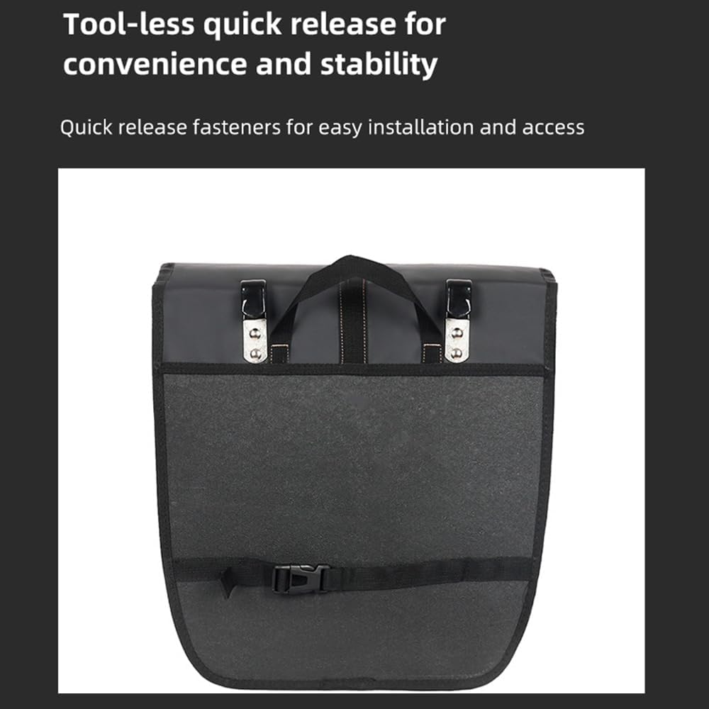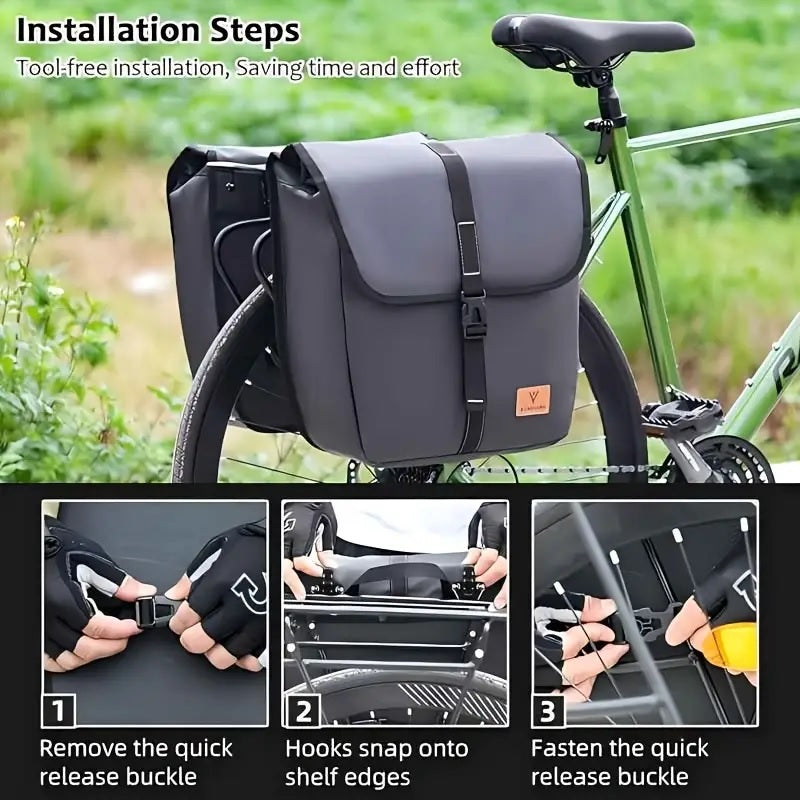 5.Easy Installation: Installing the rear seat panniers pack is quick and simple. Just attach it to the bike rack using the quick-release straps, saving you time and effort. Enjoy the convenience of hassle-free installation and get ready for your next cycling adventure without any delays.