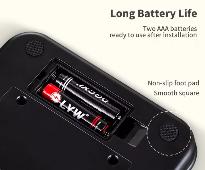 LCD BACKLIT DISPLAY - 9-bit high-definition LCD screen with blue or green back light(sent randomly) easy to read data, timing display on the left, weight display on the right, any orientation can be easily read. UNIQUE BUILT-IN TIMER - It enable you to time the brew to get a consistent cup of coffee. Timing up to 59 minutes 59 seconds FDA SAFE SILICONE MAT - It protects the scale from heat or liquid spillage, easy to take it off and keep it clean all the time. The hard plastic cover protects the scale from dirty when not using
