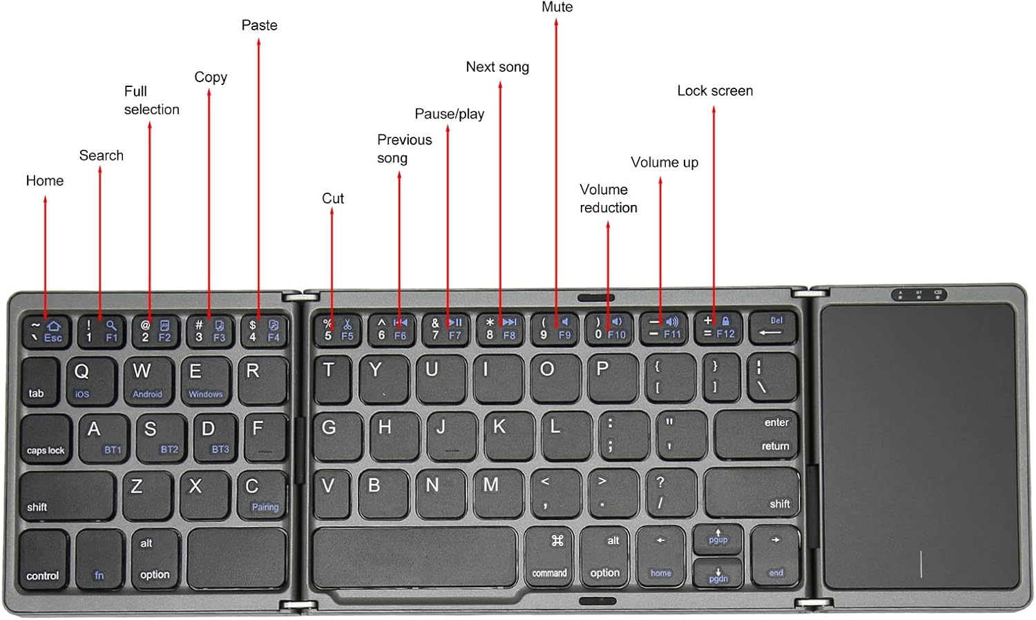 Foldable Design: Foldable keyboard has a 3 folded design, with a strong folding part and a magnetic closure after folding