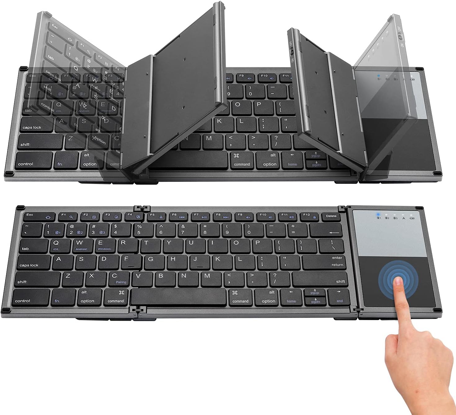 Ultra Lightweight, Thin and Easy to Carry Design: Folding storage size 7.2 x 4.5 x 0.4 inches (182 x 115 x 11 mm). The compact Bluetooth folding keyboard is 13.5 x 4.5 x 0.4 inches (342 x 115 x 11 mm) that can be carried with you at any time