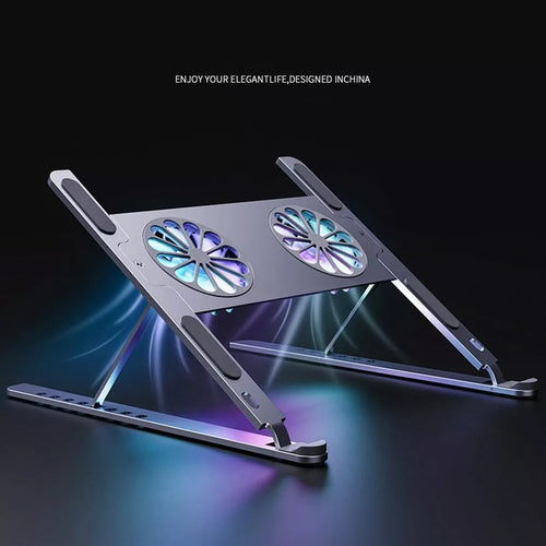 Universal Foldable Laptop & Tablet Stand Ergonomic Height Adjustable Stand with Big LED Cooling Fan