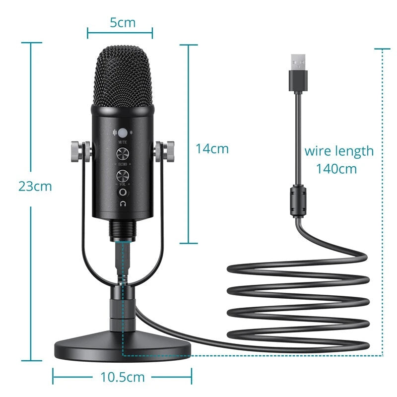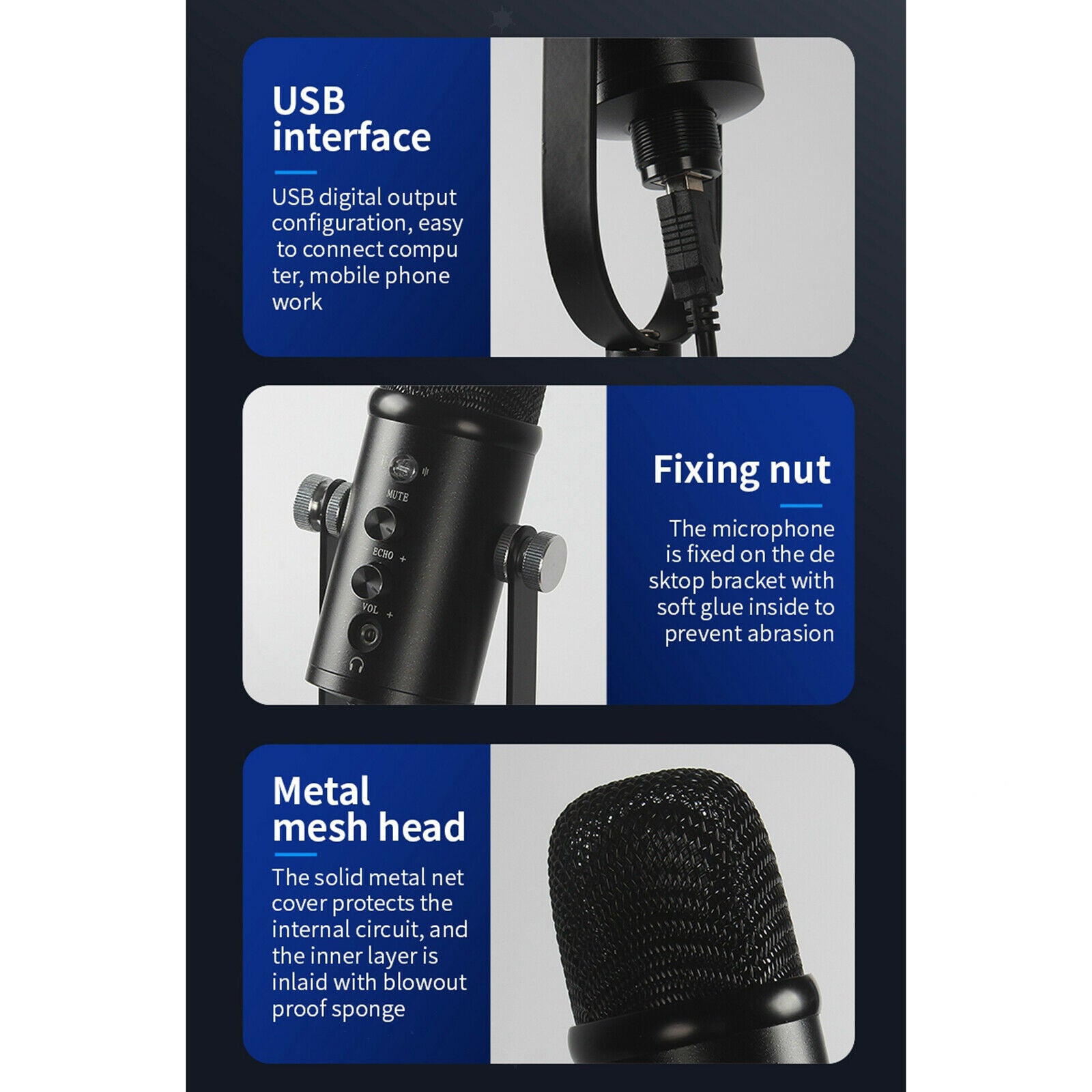 Built-In Headphone Monitoring Monitor your levels with headphones plugged directly into the mic's 3.5mm connection. Simple Controls Control the levels and mute the mic easily. Broadcast-Quality Audio Capture This USB mic boasts a 48 kHz/16-bit converter, which is considered broadcast-quality. Included Hardware Desk Stand giving your setup a professional appearance as well as a no-fuss mounting scheme. The mic also includes a mic clip, a USB cable, and a foam windscreen. Customized frequency response 30Hz-22kHz, providing clear and high-fidelity sound Plug and play - Connect directly to the USB2.0