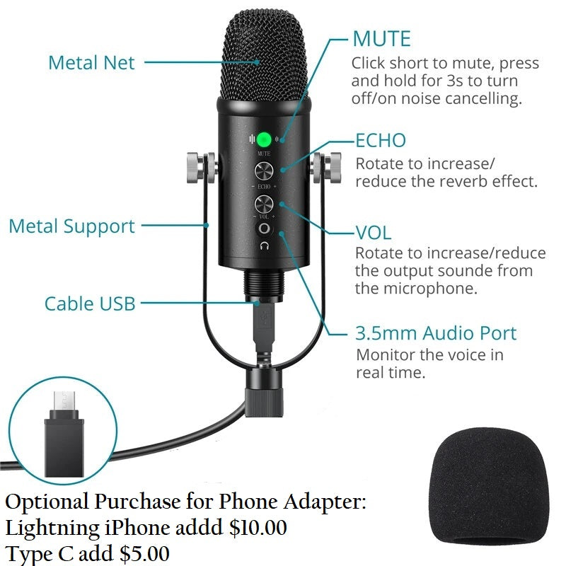 (type-c port/Lightning - Adapter sell separately) for recording music, live streaming, etc. It can be easily used in all computer systems without any additional software.