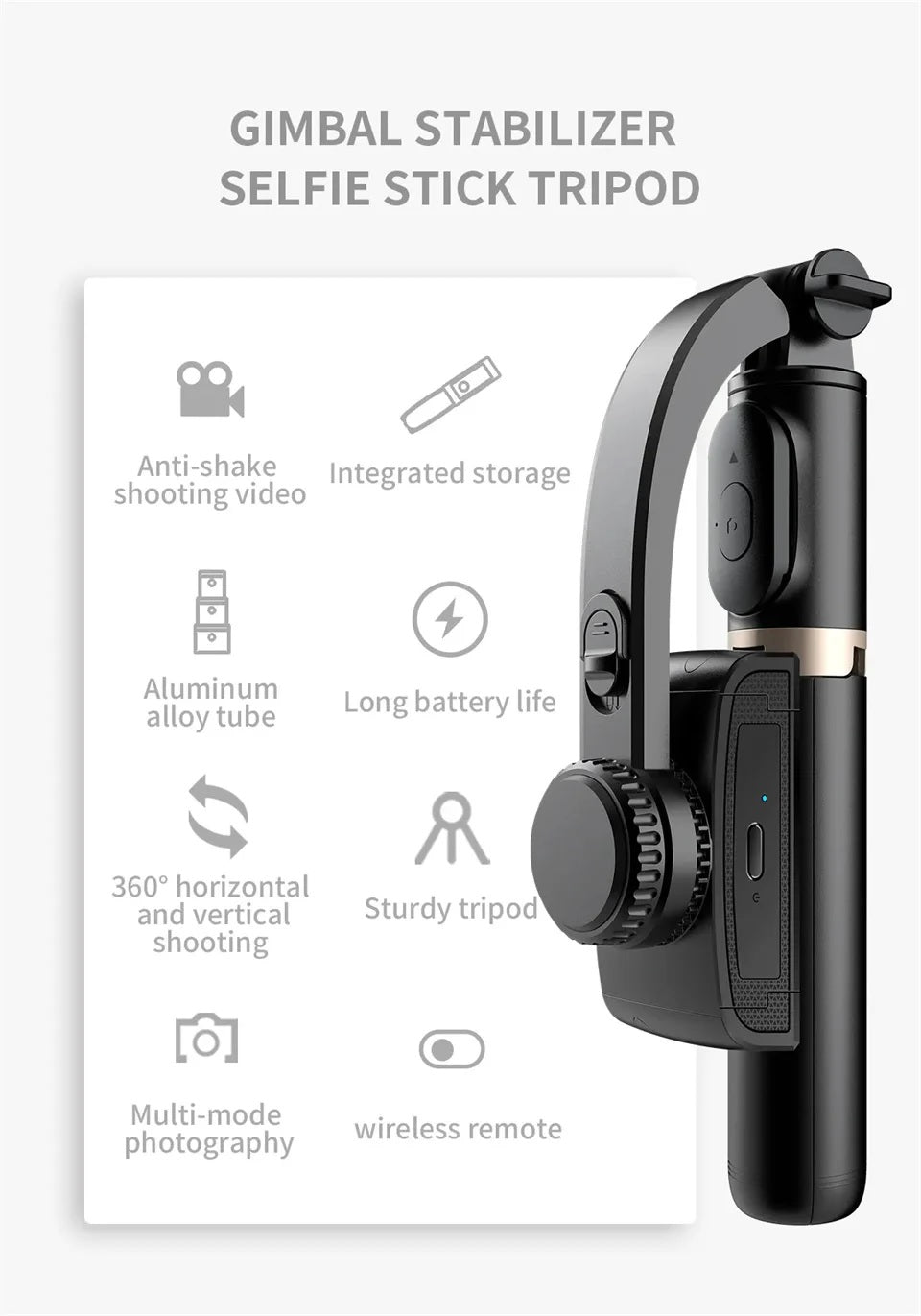 Handheld Gimbal 1-Axis Stabilizer for Smartphone Bluetooth Remote Control Selfie Stick Tripod Stand for iPhone Android Mobile