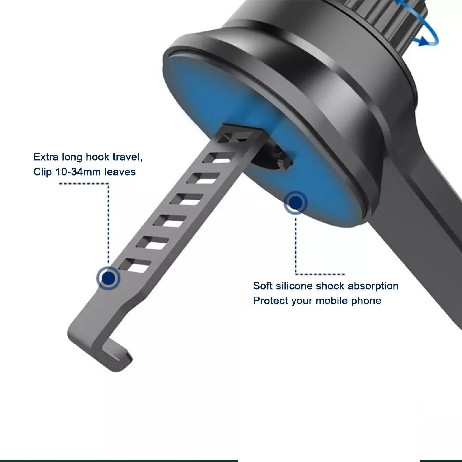【Retractable Hook Design】The notches and hooks of this magnetic phone holder will lock the vent securely, even if you have been driving on the roughest mountain roads or on speed bumps, the phone mount will not fall out of the car vent.