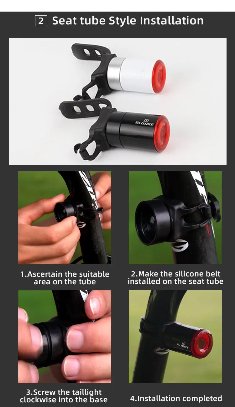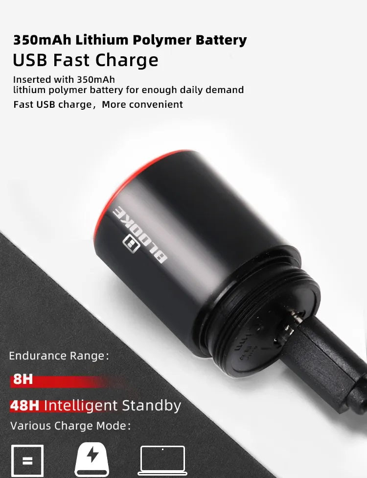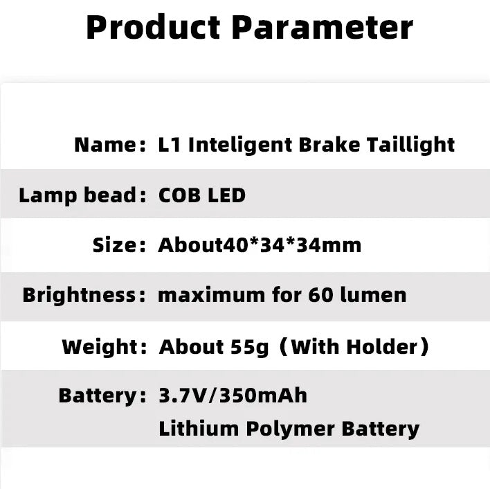 Brake sensor: When riding a bicycle at night, when the tail light senses the brake action, it will display at maximum brightness.