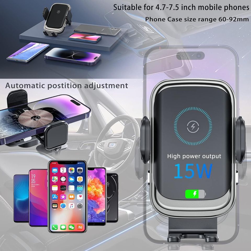 [15w Max Wireless Fast Charging - Compatible with All Phones] -- Our cordless charging mount compatible with any mobile phone that supports Qi wireless charging,15W wireless fast charging for LG V50/V40/V30/V40 /G8/G7;10W wireless fast charging for Samsung Galaxy Note Series 10;7.5W wireless fast charging for iPhone 15/14/13/1214 Pro Max/14 Pro/14 Max/14/13Pro Max/13 Pro/13/12/XS Compatible with otterbox,