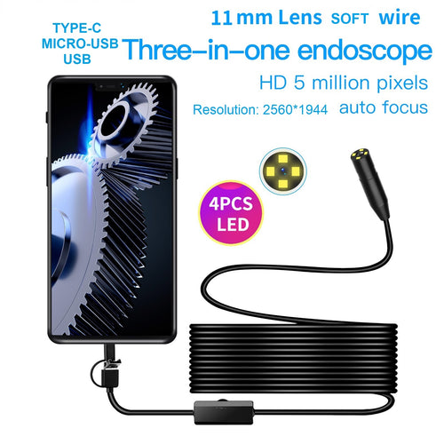 USB 3 in 1 Interface (Micro/USB/Type-C) 5.0 Mega Pixel 11mm lens Camera Endoscope Inspection For Android Smartphone PC IP67 - SOFT Cord 3.5Meter