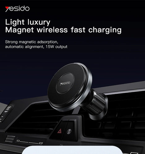 YESIDO C190 Magsafe Magnetic Car Phone Holder Wireless Chargers 15W for iPhone with Innovative Clamp