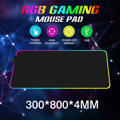 RGB Fabric Luminous Mouse Pad Colourful Glowing USB LED Non-slip RGB 14 Lights Mode Anti Slip USB Powered (300*800*4mm)