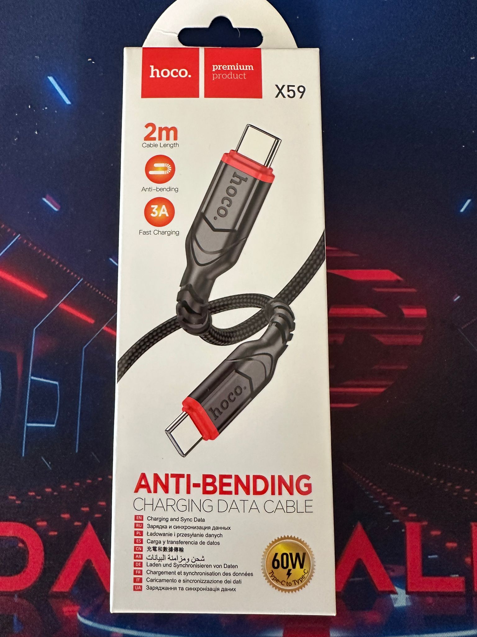 HOCO X59 2.0 Meter Fabric Braided Nylon Anti Bending USB Type C to C 60W 3A Fast Charging & Data Hotcync Cable