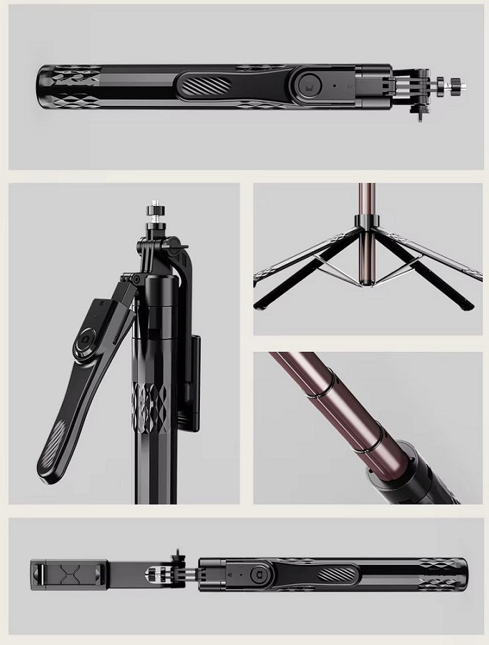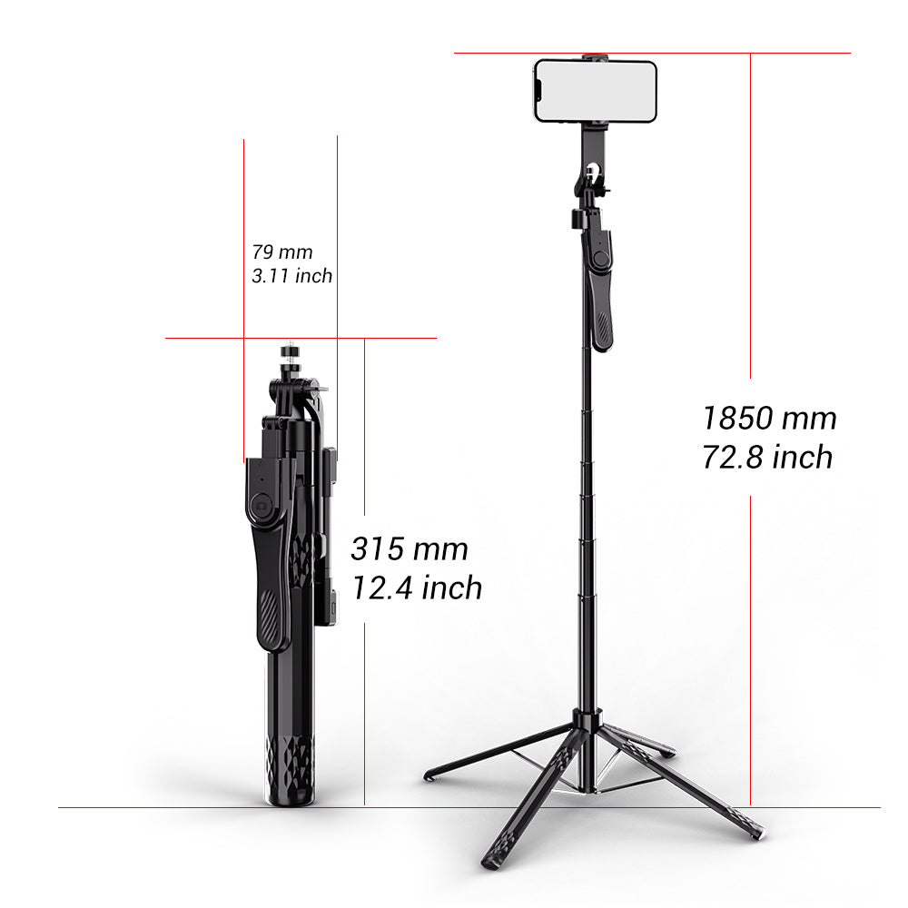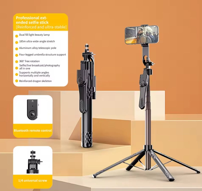 1.85M Aluminum Alloy Rod Extendable Four-Legged Stand Phone Holder Bluetooth Selfie Stick